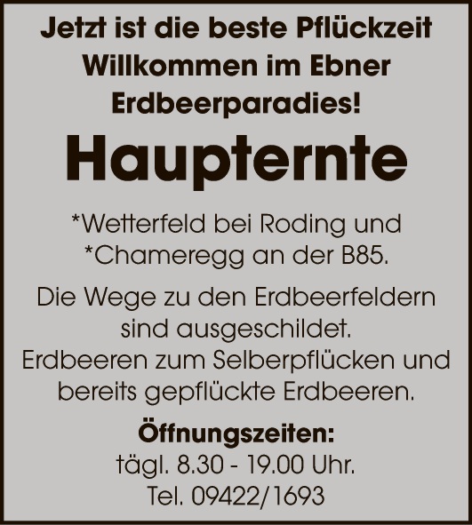 Jetzt ist die beste PflückzeitWillkommen im Ebner Erdbeerparadies!