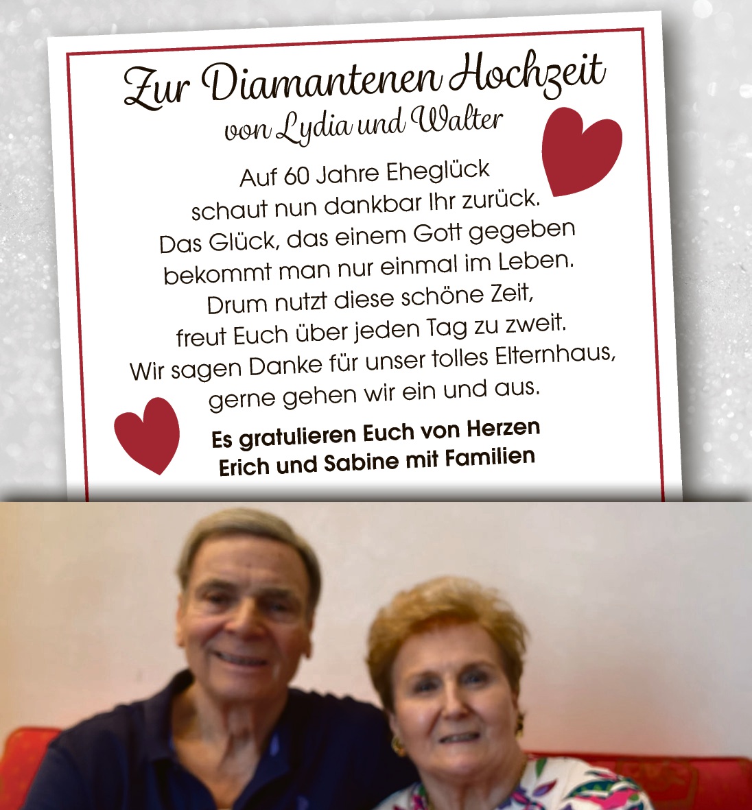 Zur Diamantenen Hochzeit von LYDIA und WALTER