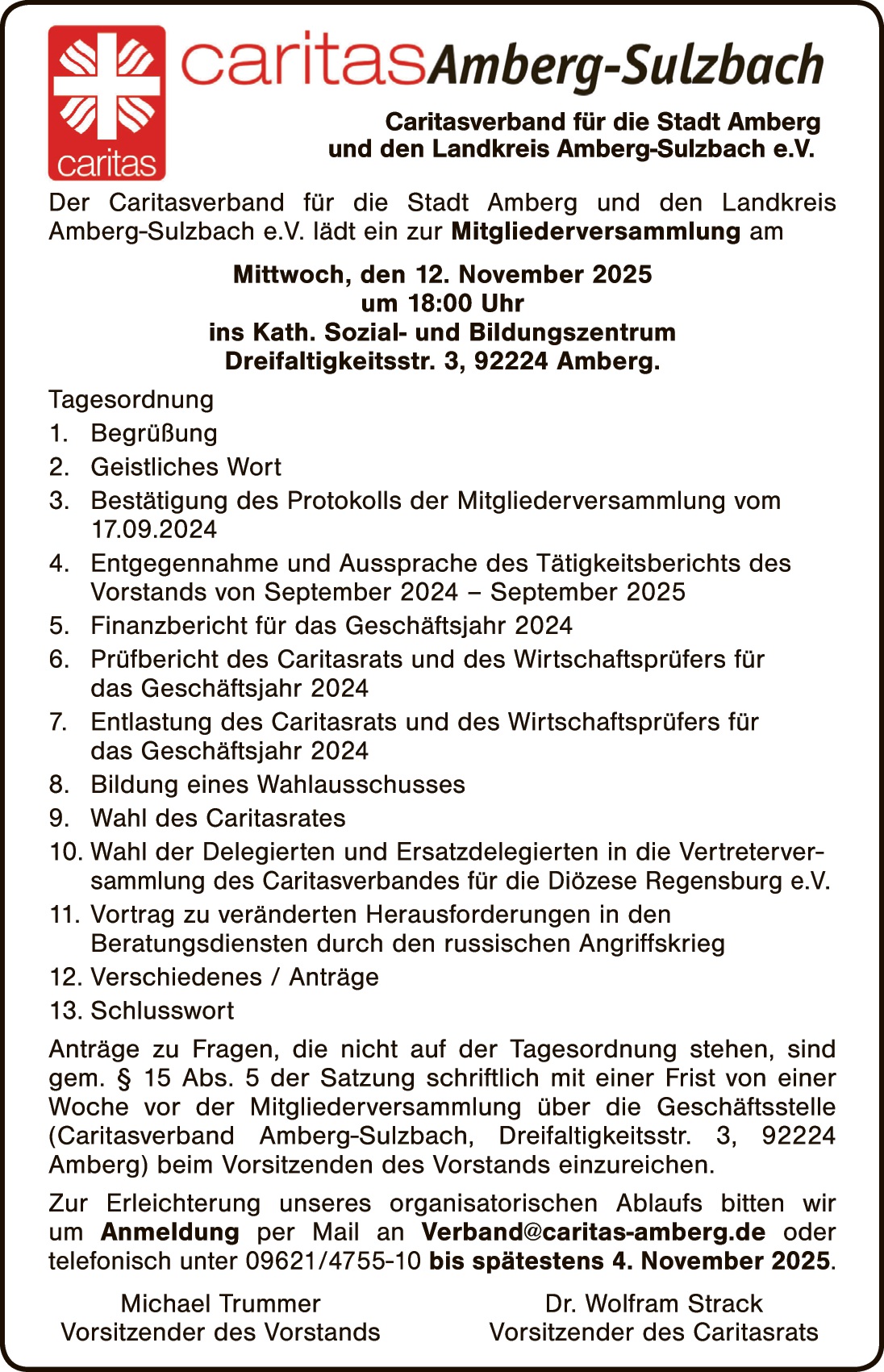 Jetzt telefonisch unter 0961/85-502 oder