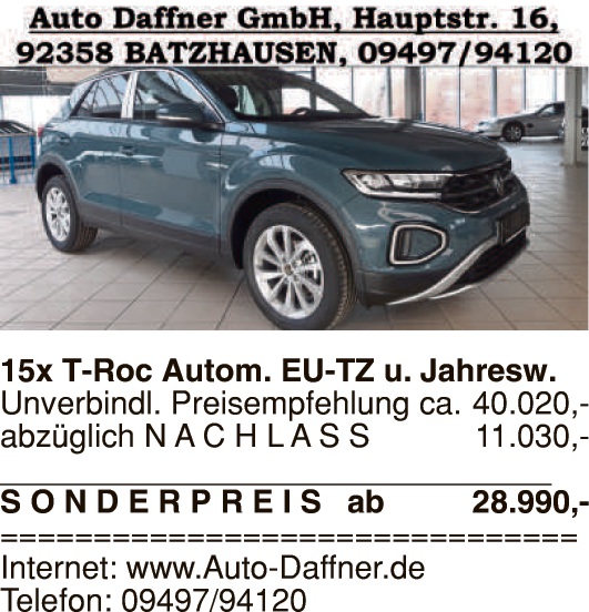 15x T-Roc Autom. EU-TZ u. Jahresw.