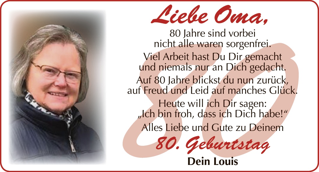 Alles Liebe und Gute zu Deinem 80. Geburtstag!