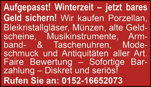 Für alle, die ein Herz für schöne, alte Dinge, gut erhaltenes Gebrauchtes haben oder auf der Suche nach dem richtigen Partner für eine Wohnungsauflösung sind: In der Rubrik „Ankauf/Verkauf“ können Sie ihre Gesuche platzieren, nach Schnäppchen stöbern, nach dem nächsten Flohmarkt in der Region suchen oder auf Ihre eigenen Dachbodenfunde aufmerksam machen.