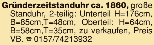 Verkauf von privaten Unikaten und hochwertigen Raritäten. Tel. 0172/8189058