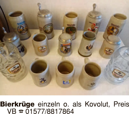 Große handgefert. schöne Krippe m. Figuren, Schranknähmaschine von 1955, Bierkrugsammlung, gr. neuw. gepolst. handgef. Massiv-Holzstuhl, div. Rehgehörne, alles VB Tel. 0170/2656711