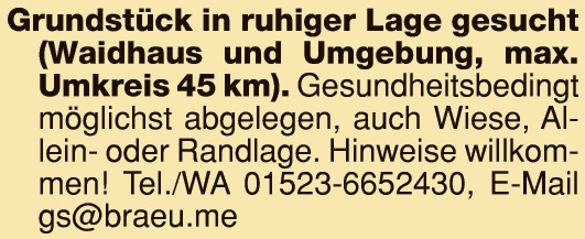 Paar sucht naturgelegenes Haus (auch gerne älter) oder Grundstück in Weiden (+20 Kilometer Umkreis) zum Kauf Tel. 01717459849