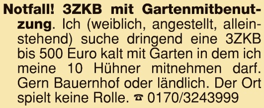 Junge Fam. su. 3-4 Zi.-Whg. auf Zeit! Wir (Ehepaar+Kleinkind) su. im LKR TIR/ NEW od. in Weiden eine gepflegte 3-4-Zimmer-Wohnung zur befristeten Anmietung für ca. 12 Monate. Zeitraum flexibel ab sofort. Kontakt: 0160/3629031, mail.efh-gesucht@web.de