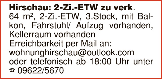 20.12.2025 | Immobilienverkauf | 2-Zi.-Eigentumswohnung WEIDEN/2-Zi ETW, 62 m², barrierefrei, TG-Stellplatz, Pflegeleistungen zubuchbar, Eigennutzung/Kapitalanlage, keine Prov. oder Maklergeb., VB 196.000 Euro. Tel. 0961/63193788 od. 0152/63193788 Anzeigen
