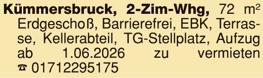 Kümmersbruck: Bestens renov. 4-Zi.-DG-Whg., 1,5 km v. Stadtrand AM u. Siemens, ruh. Lage, sehr helles DG, 84 m², 4 Zi., Kü. m. EBK, Bad/WC/Du., ZH, Kellerraum, Nutzung v. Blk. u. Garten mögl., Miete: 650 Euro + NK., Optional Garage. Frei ab 1.2.26. Anfragen per Mail an: wohnungkbruck@web.de