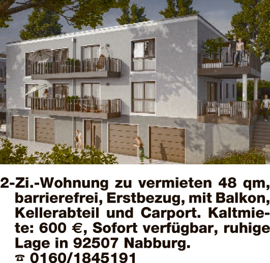 OG-WH in Nabburg, , 70 m², ab März 26, mit südseitl. Balk., zu verm. Tel. 0173/5760275