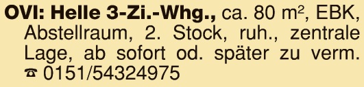 28.02.2026 | Vermietungen | 3-Zi.-Wohnungen Haid: 3-Zi.-Whg., 95 m² , moderne Ausstattung, Balkon, Kamin, 860,- Euro KM. Tel. 0178/9689525 Anzeigen