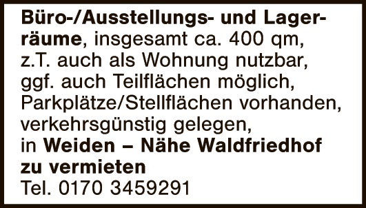 WEN-Frauenrichter Dorfplatz 1: EG-Wohnung, 86m², Wohnkü.(EBK),Wohnzi., Schlafzi., Bad, KZ/Büro, Abstellr. + sep. Stauraum, sep. WC, Möbel können übernommen werden, Gartennutzung, Parken im Hof bzw. Carport, Ölheizung. KM VB Euro 1200,-. Tel. 0160/91066140 oder E-Mail: gm.frank@t-online.de