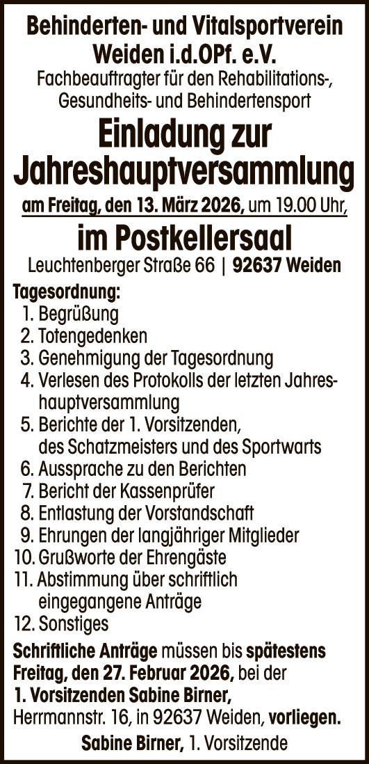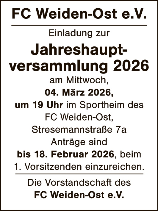 30.01.2026 | Veranstaltungen | Vereinsanzeigen
