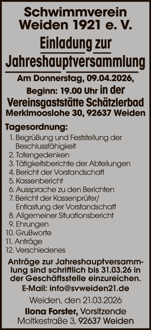 Einladung zur Jahreshauptversammlung des TV Floß 1908 e.V.am Freitag, den 20.03.2026 um 19 Uhr