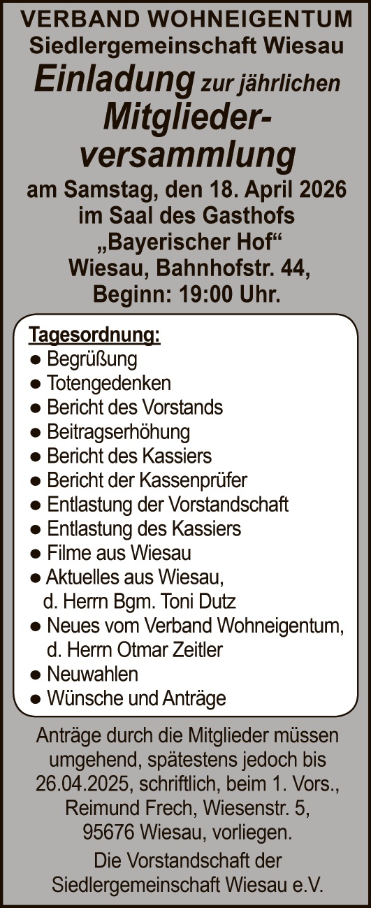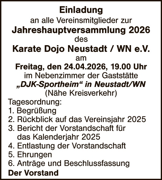 08.04.2026 | Veranstaltungen | Vereinsanzeigen