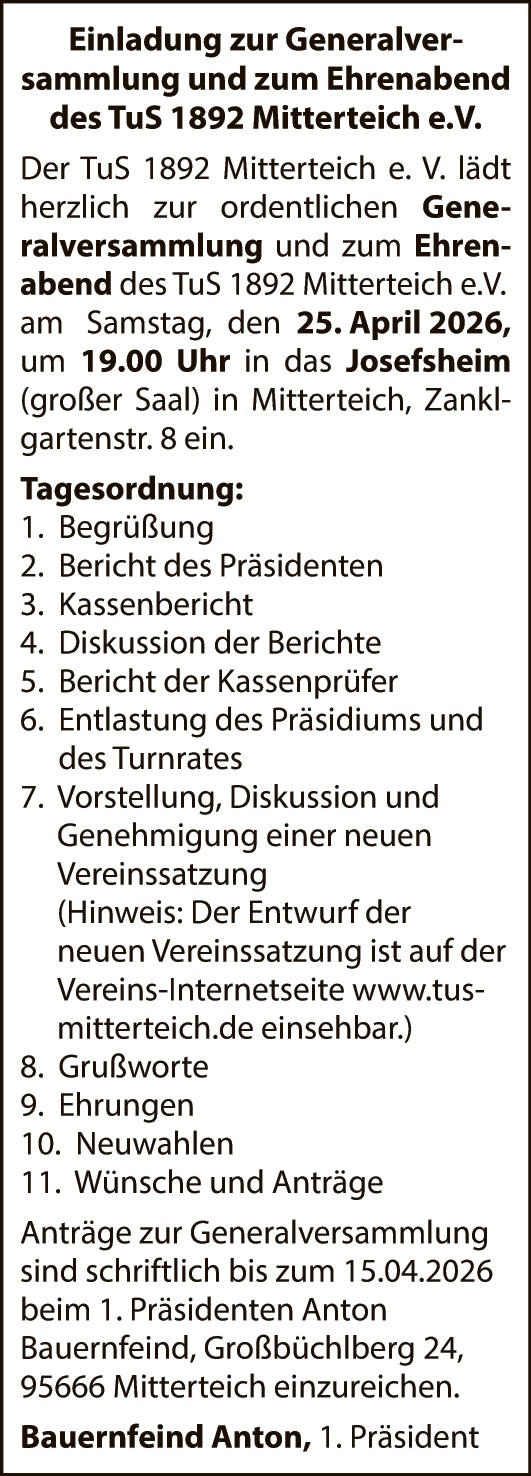 09.04.2026 | Veranstaltungen | Vereinsanzeigen