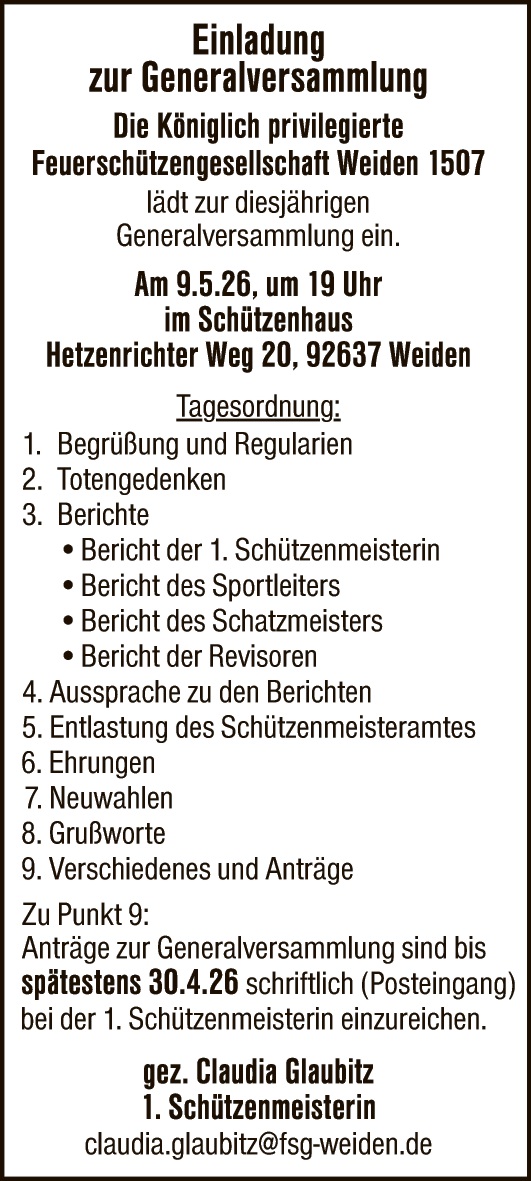 16.04.2026 | Veranstaltungen | Vereinsanzeigen