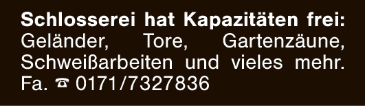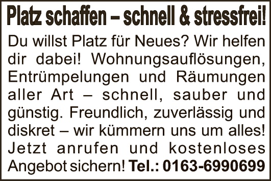 Wann müssen die Hecken geschnitten werden? Wann ist die Praxis Ihres Hausarztes geschlossen? Das ist gut zu wissen, wenn Sie Ärger und unnötige Wege vermeiden wollen. In der Rubrik „Verschiedenes“ listet der Anzeigenteil die organisatorischen Dinge des täglichen Lebens auf. Bekanntmachungen, Dienstleistungen, Gesuche oder Mitteilungen von Ärzten. Auf einen Blick sehen Sie, wer für was zuständig ist, wer etwas sucht oder wer im Notfall helfen kann. Das ist echter Service für alle Situationen des Alltags.