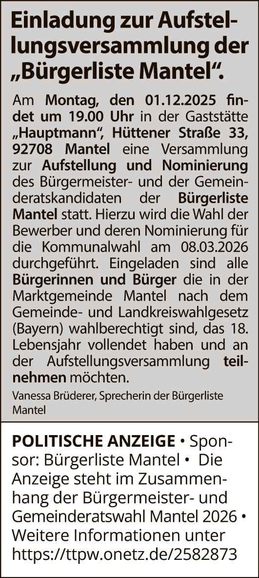 26.11.2025 | Verschiedenes | Bekanntmachungen