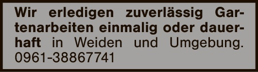 Biete Gartenarbeit rund ums Haus! Hecken-, Sträucherschnitt, Rasenpflege, Unkrautentfernung, Zaunarbeiten, Steinreinigung uvm. Tel. 0176/24012704